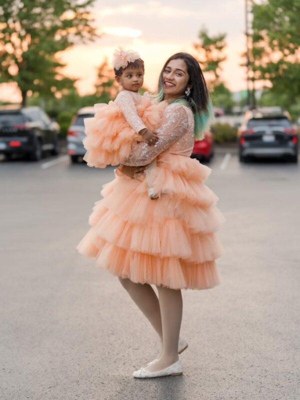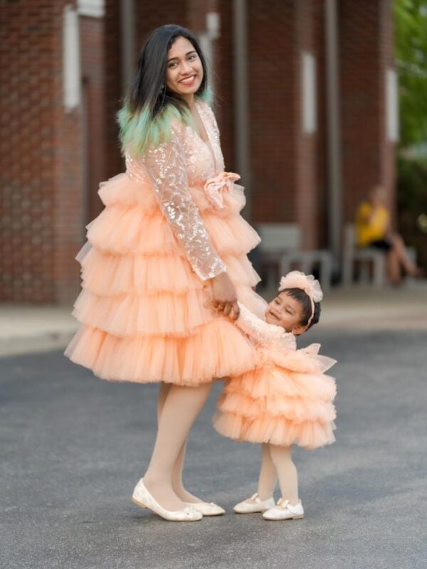 5 layered ruffle short knee length dress- mom & daughter duo Care Dry Clean Only.